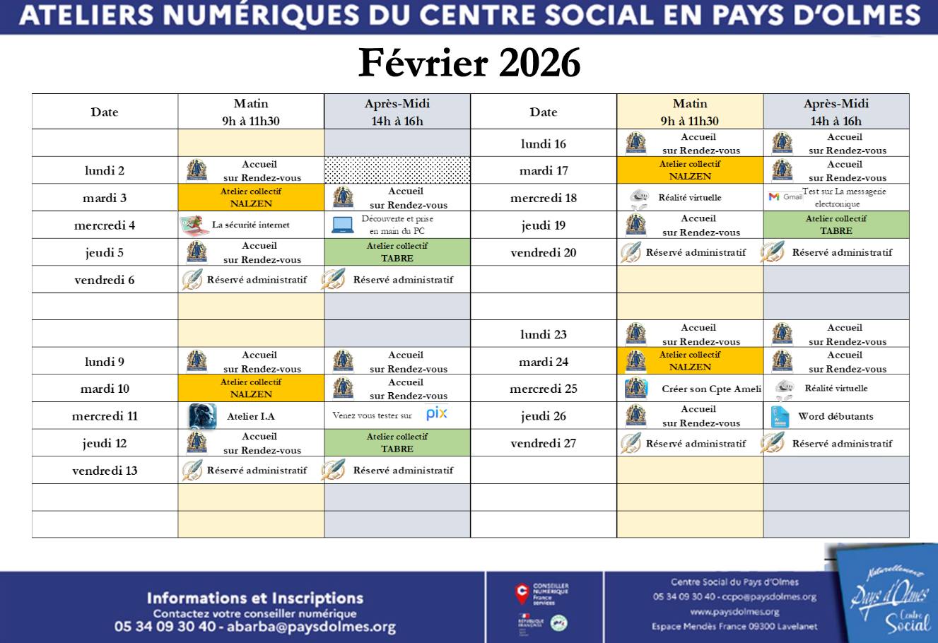 Le Centre Social du Pays d'Olmes vous invite à découvrir ses ateliers numériques pour FEVRIER 𝟮𝟬𝟮𝟲