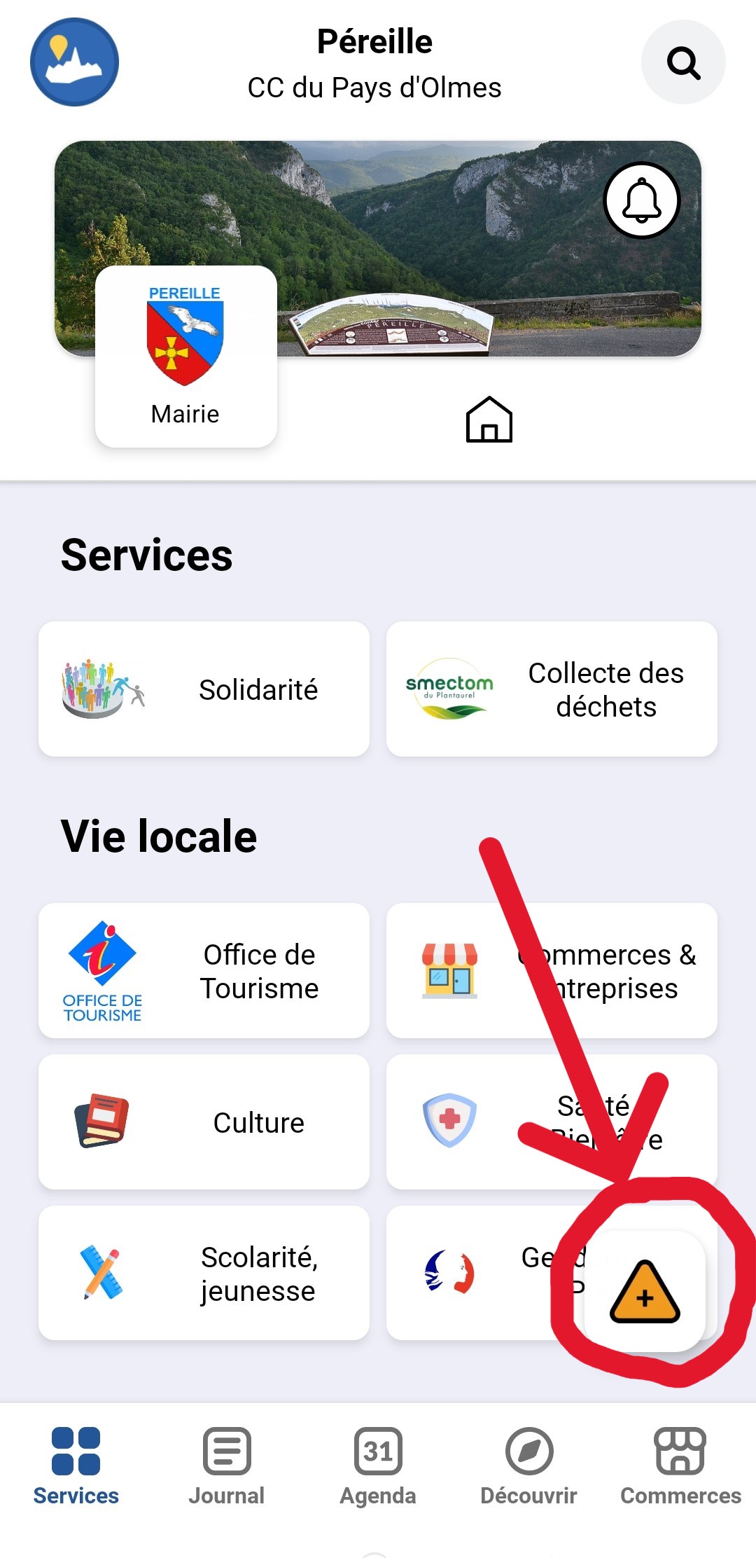 Vous pouvez signaler un problème survenu sur la commune à l'aide du petit triangle orange en bas à droite de l'écran de l'application IntraMuros.