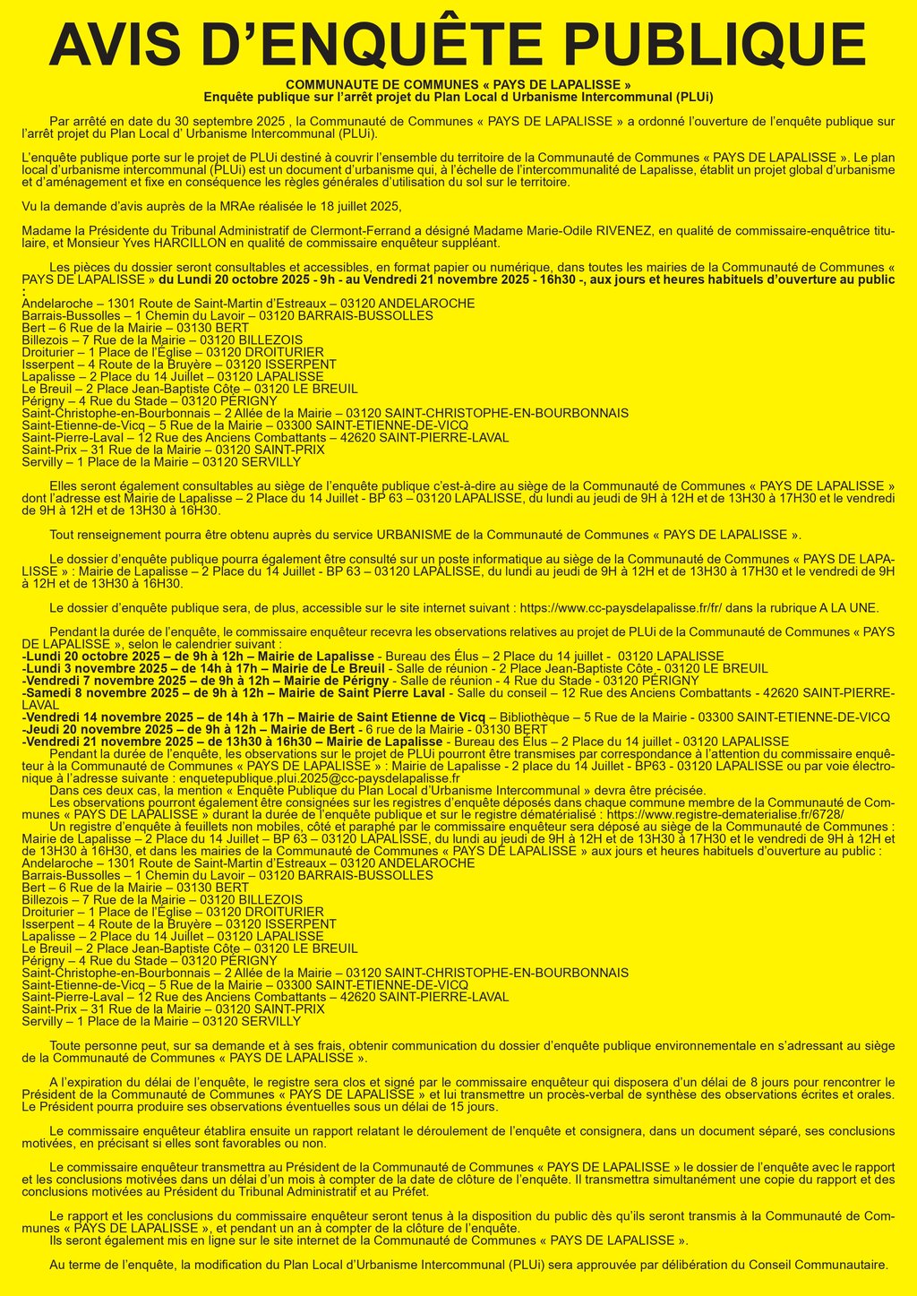 📣 L’ENQUÊTE PUBLIQUE PLUI EST LANCÉE AUJOURD’HUI !