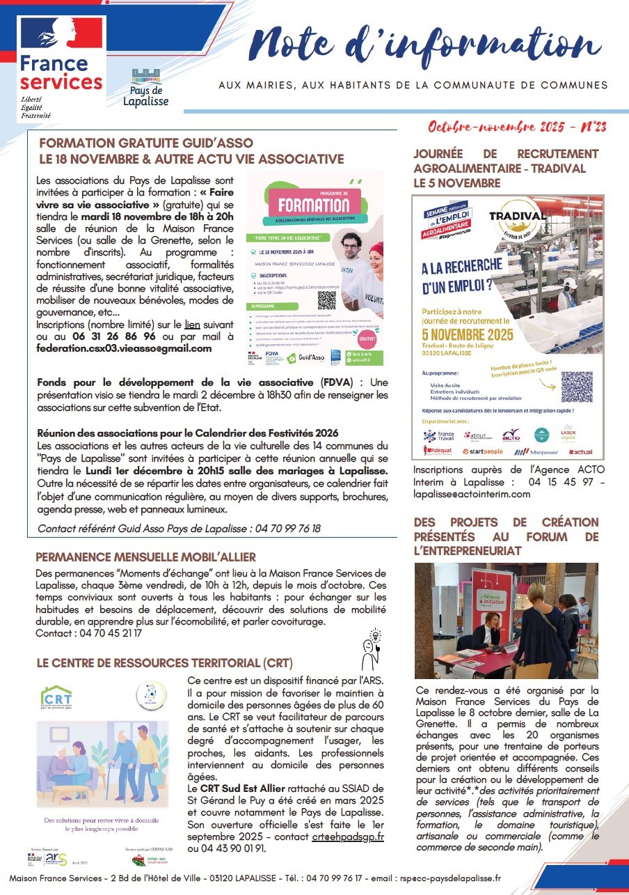 LETTRE D'INFORMATION MAISON FRANCE SERVICES PAYS DE LAPALISSE (N°23 – 2025)