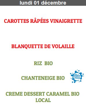 Menus cantine quotidien Tagnon