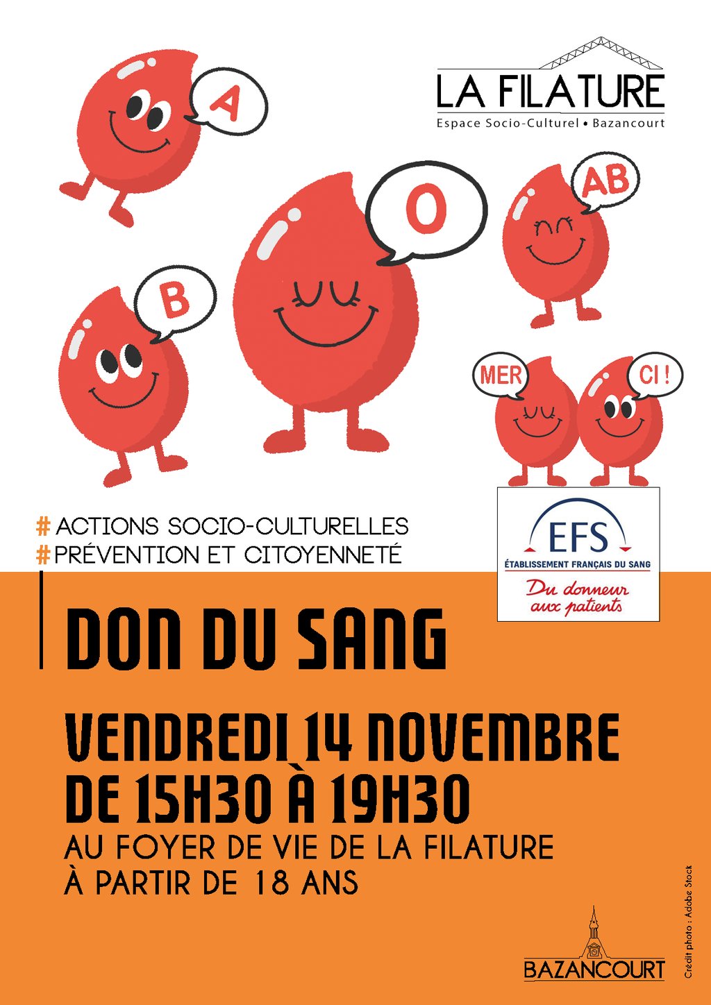 En cette période hivernale, la commune de Bazancourt et La Filature vous invitent à la collecte du don du sang de l’Établissement Français du Sang au sein du foyer de vie !