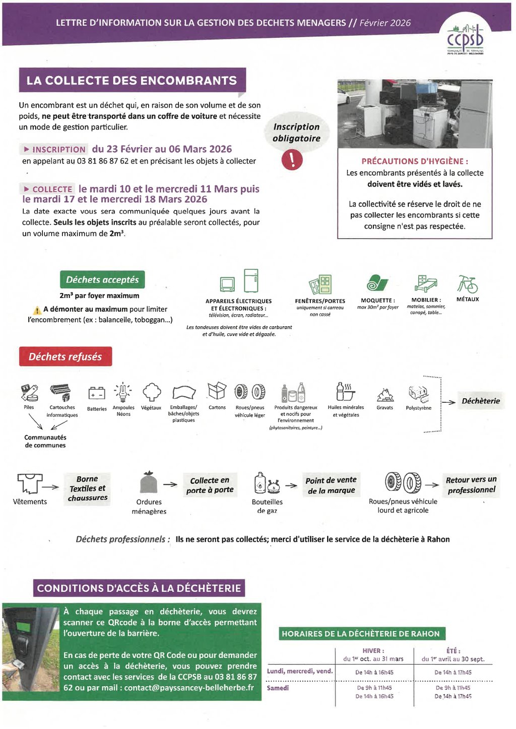 📢 La date exacte vous sera communiquée quelques jours avant la collecte. Seuls les objets inscrits seront collectés, dans la limite de 2m³ par foyer.