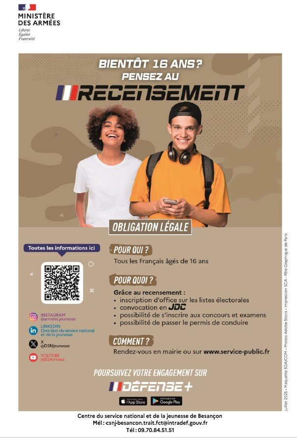 Le recensement citoyen est obligatoire dès 16 ans.