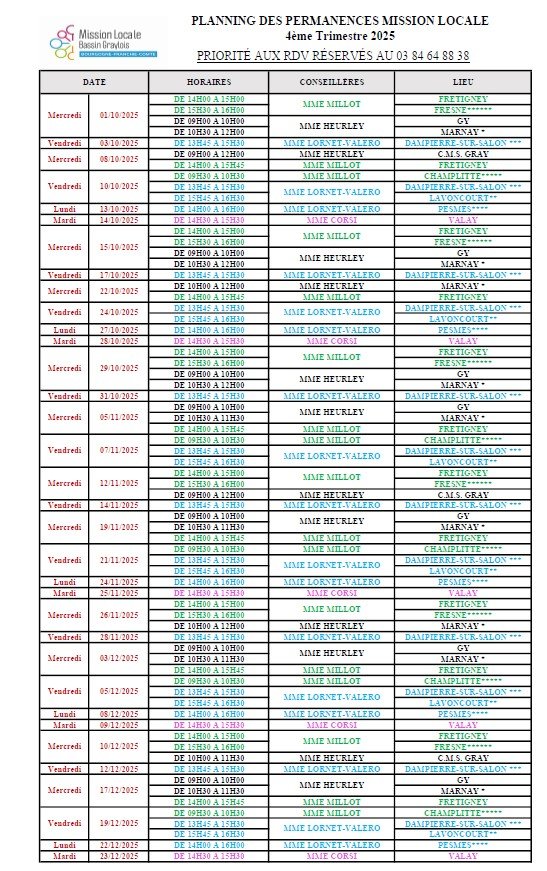 Permanence : lundi de 14h00 à 16h30 à la France Services de Pesmes sur RDV auprès de la Mission locale