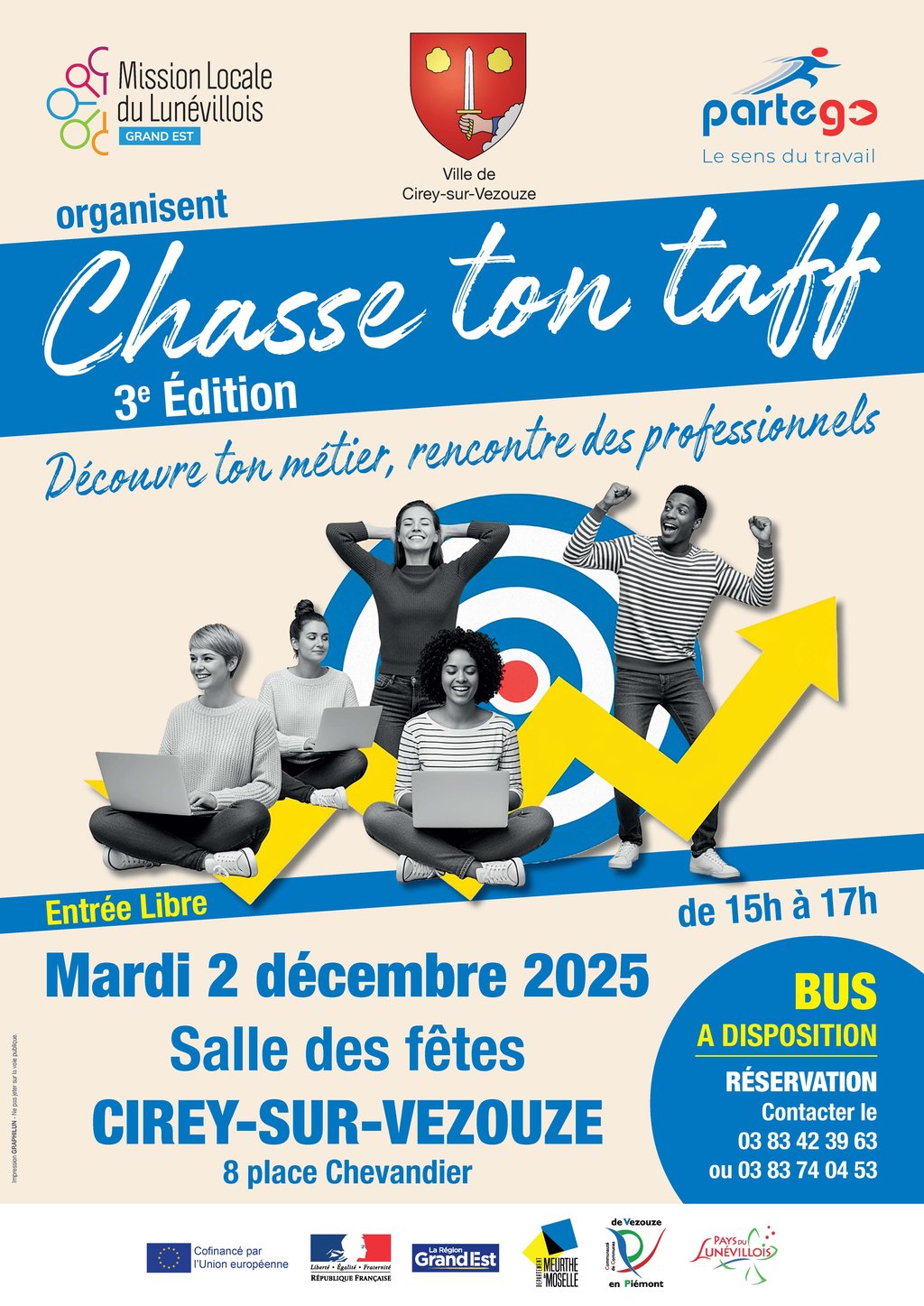 ĂvĂ©nement organisĂ© par la Mission Locale du LunĂ©villois, la Ville de Cirey et Partego â Le sens du travail.