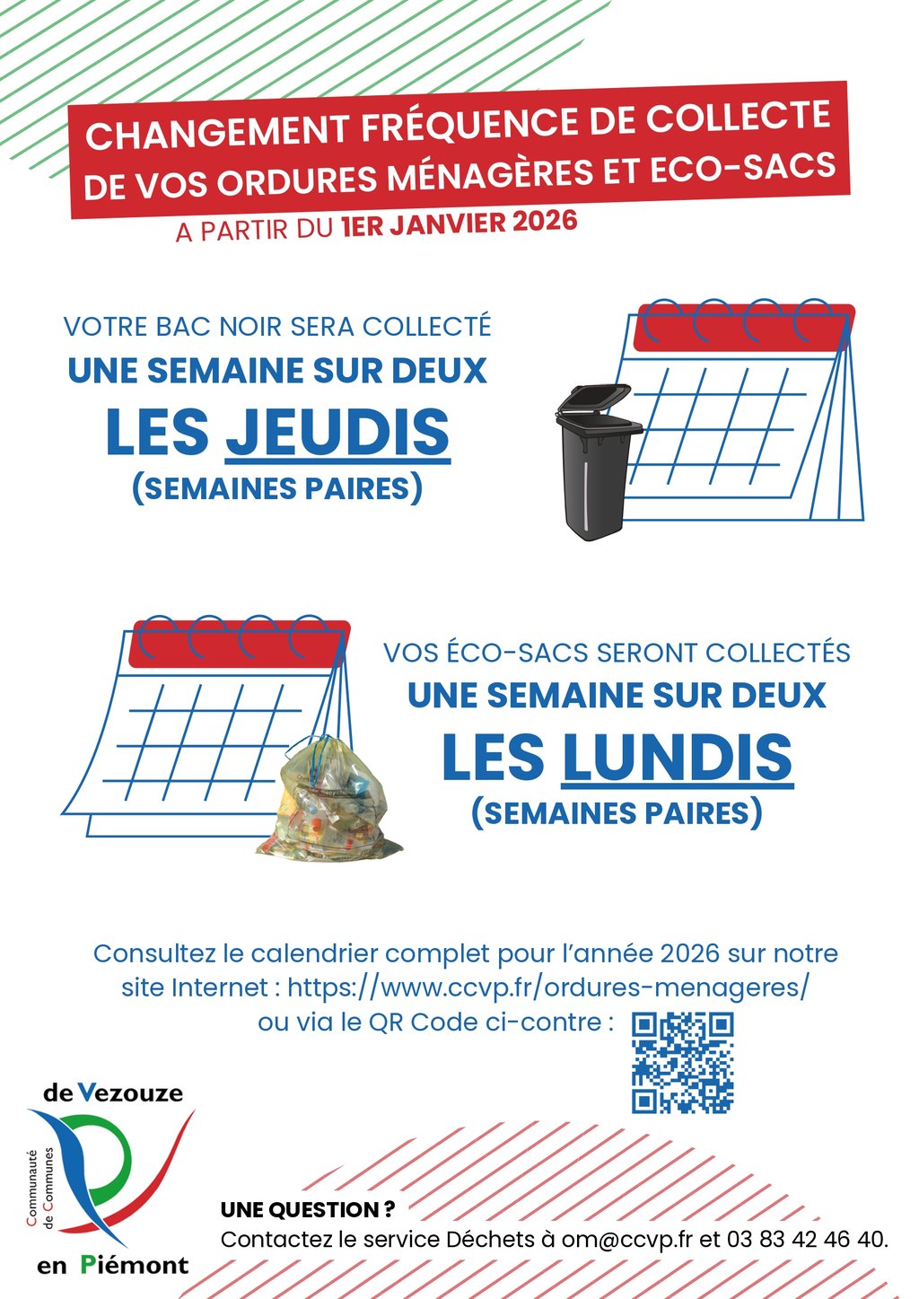 À partir du 1er janvier 2026 la collecte des éco-sacs se fera désormais les lundis en semaine paire.