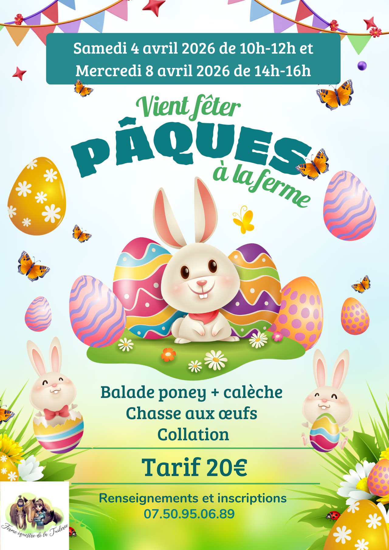 Cette chasse aux œufs est réservée aux enfants de 4 à 12 ans. Balade à poney et calèche, chasse aux œufs, goûter maison.
