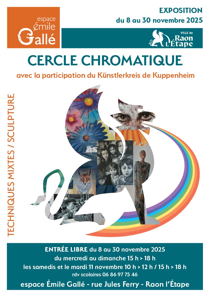 Nos talentueux artistes du "Cercle Chromatique" ont l’immense plaisir de vous retrouver du 8 au 30 novembre, au sein de l’espace Émile Gallé.