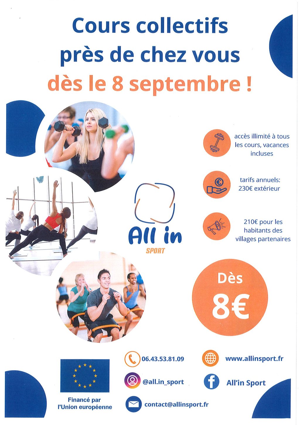 Cours Collectifs près de chez vous dès le 8 septembre 2025 avec All'in Sport.