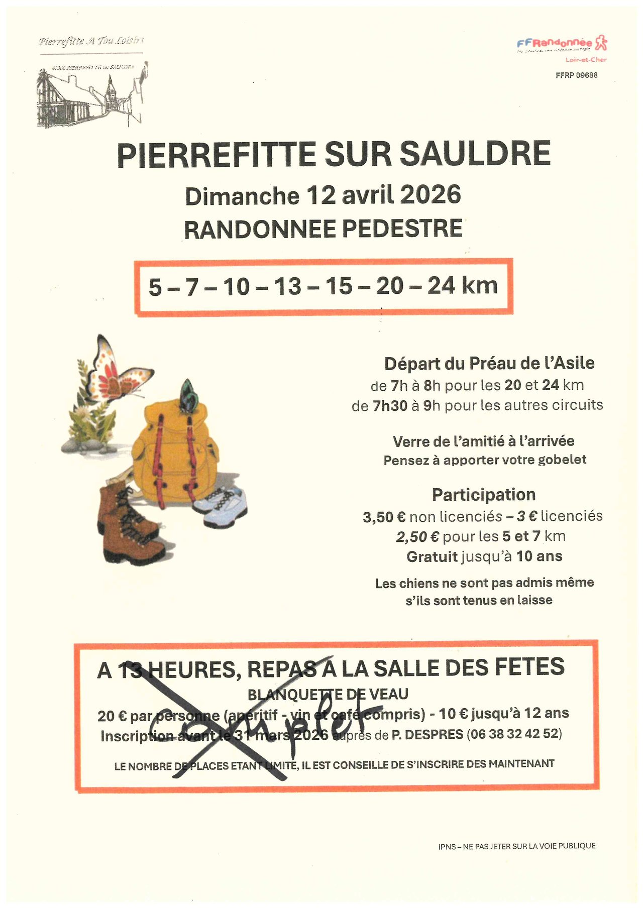 Pour information : les inscriptions sont closes pour le repas (complet).