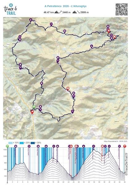 Une boucle qui traversera les 3 villages du Canale Pietralba Lama et Urtaca avant de basculer par le col de San Pancraziu dans la région du Nebbiu. Les participants traverseront les villages de Santu Petru di Tenda et San Gavinu di Tenda avant de se diriger sur le point culminant de la Serra di Tenda le Monte Astu (1535m), les dix derniers kilomètres seront identiques que la boucle de la Petralbinca.