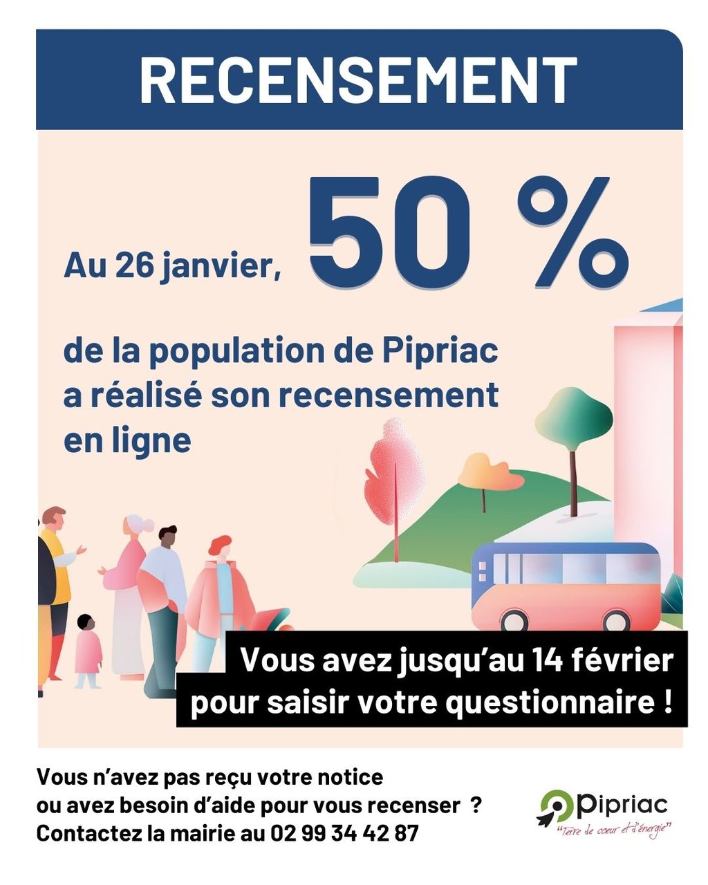 Plus d'infos :Â https://www.mairie-pipriac.fr/actualites/le-recensement-de-la-population-commence-a-pipriac/Â