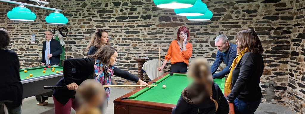 Vendredi dernier, 5 membres de l'association Billard Piré-Chancé (ABPC) ont reçu 10 visiteuses et visiteurs pour passer une bonne soirée autour des 3 tables de billard anglais ! 🎱