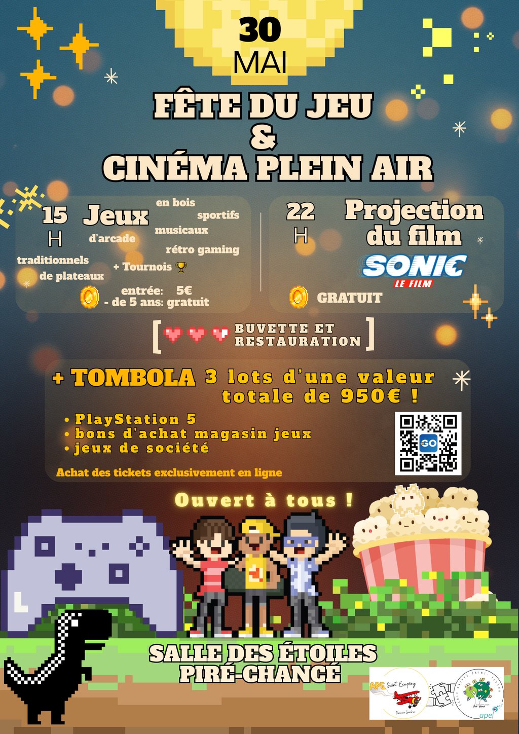 L’APE Antoine Saint-Exupéry et l’APEL/OGEC Saint-Joseph ont le plaisir de coorganiser cet événement inédit : la Fête du jeu & Cinéma plein air.
