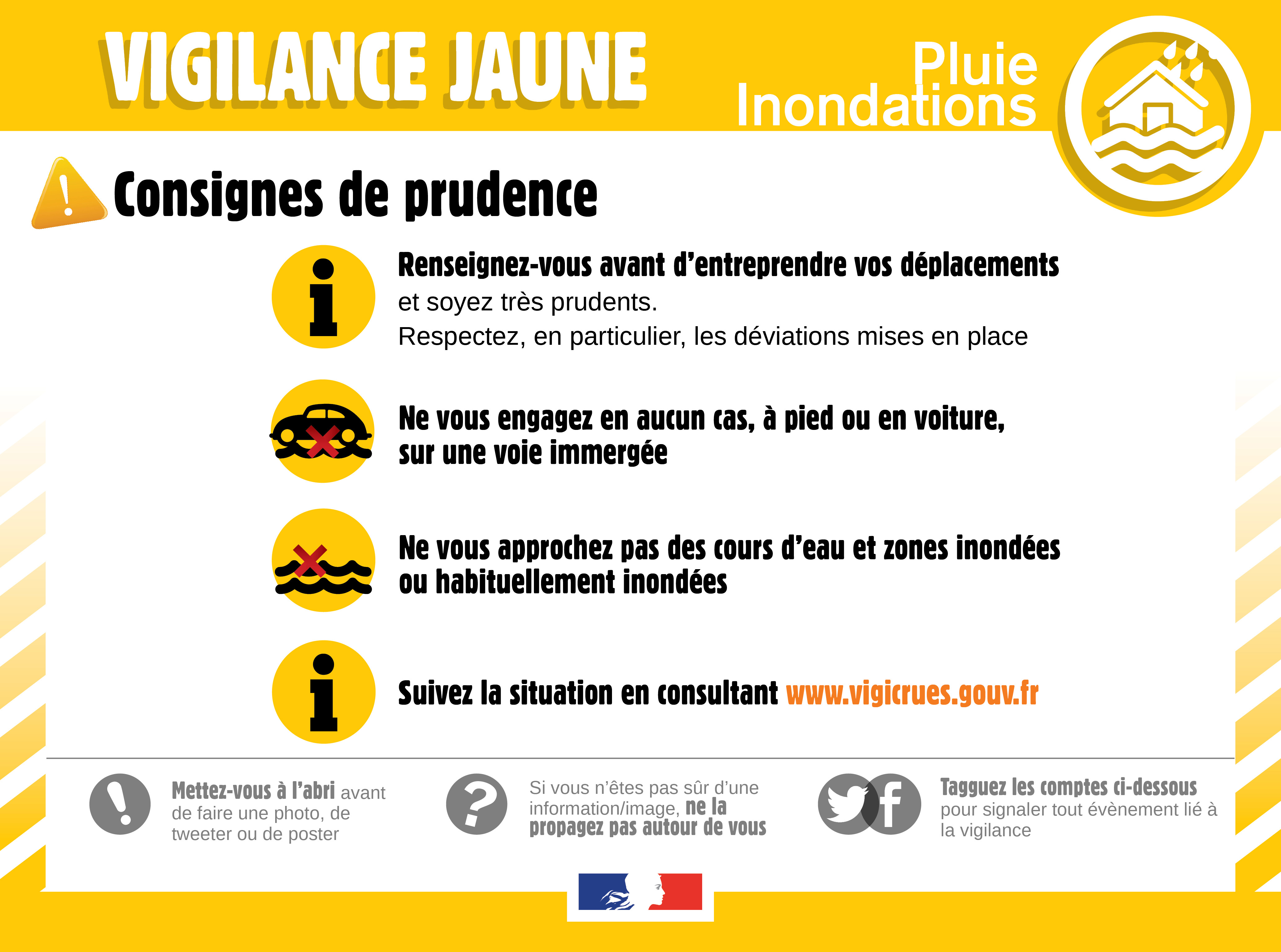Restez vigilants et tenez-vous informés de l’évolution de la situation sur (https://www.vigicrues.gouv.fr/)