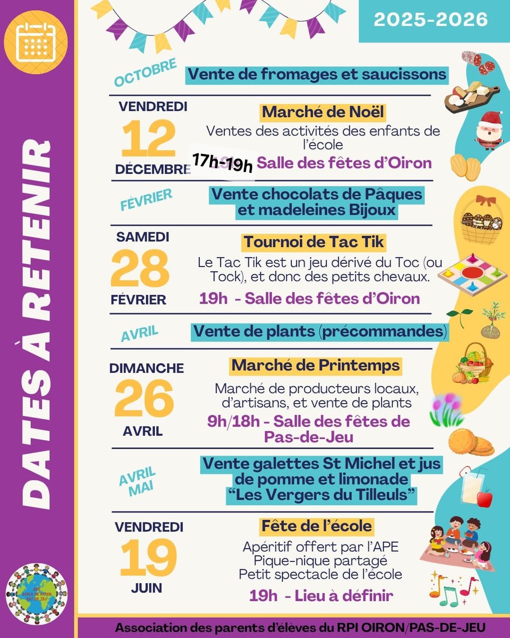 Voici les dates à retenir pour APE Oiron Brie Pas de Jeu