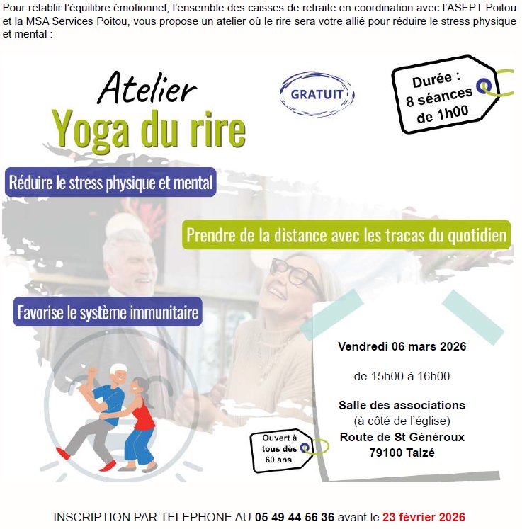 La MSA Service Poitou organise un atelier "Yoga du Rire"