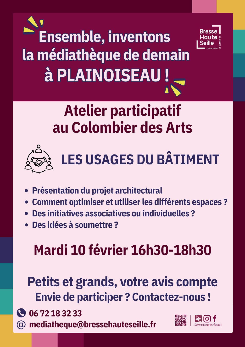 Première séance le mardi 10 février de 16h30 à 18h30 au Colombier des Arts, elle portera sur la future utilisation du bâtiment médiathèque.