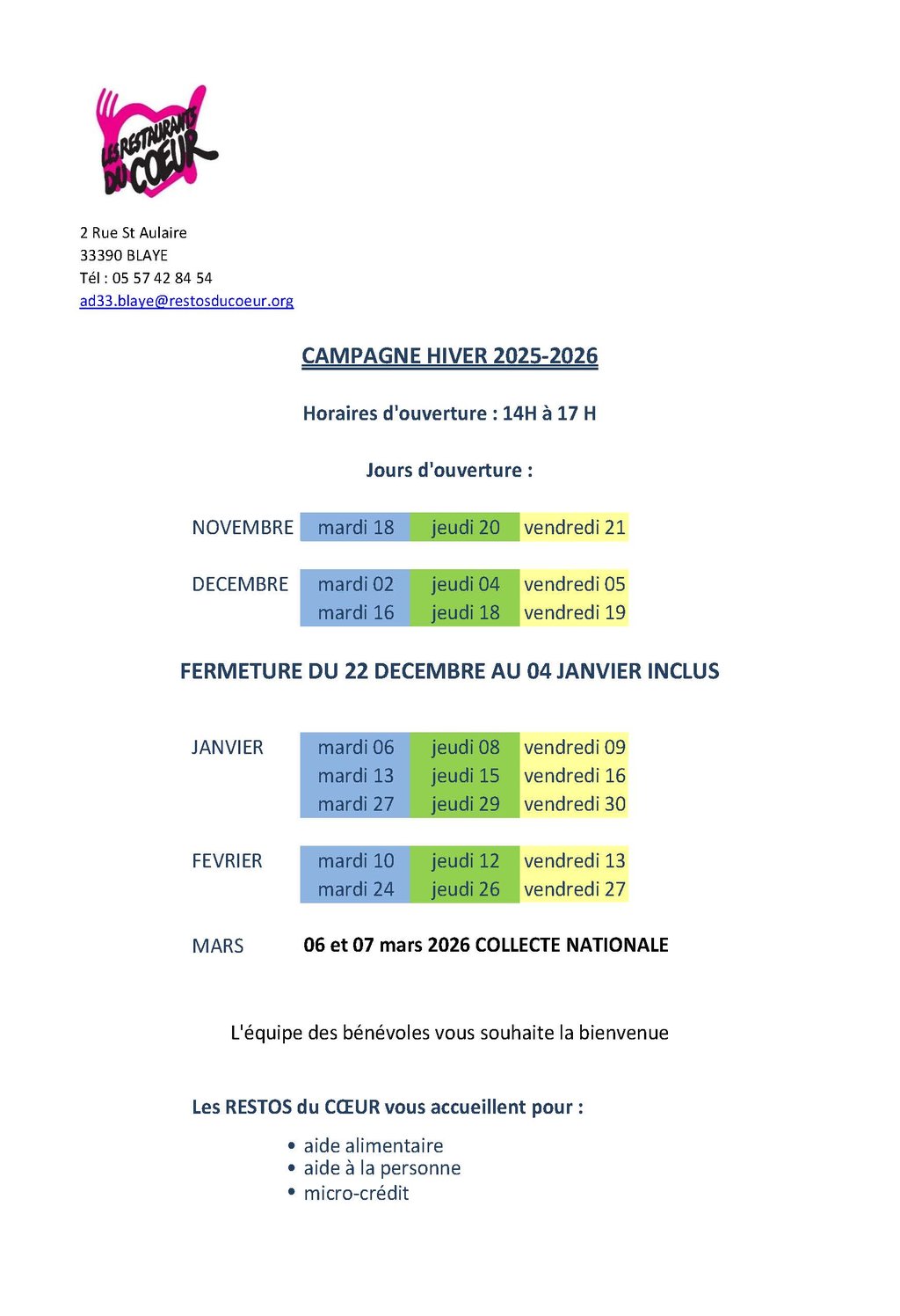 Retrouvez ici les jours et horaires d'ouverture.