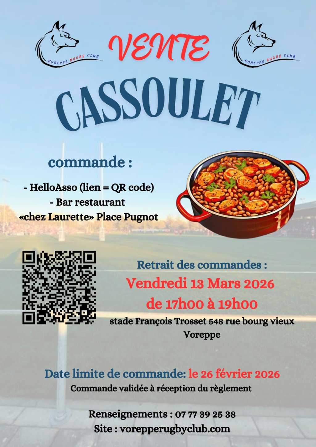 Commande au bar "Chez Laurette" place Armand-Pugnot ou https://www.helloasso.com/associations/vorepperugbyclub/evenements/vente-de-cassoulet-de-castelnaudary-2026