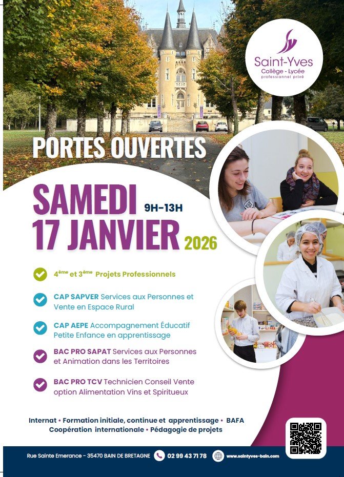 PORTES OUVERTES DU LYCÉE PROFESSIONNEL PRIVÉ SAINT-YVES À BAIN-DE-BRETAGNE LE 17 JANVIER 2026