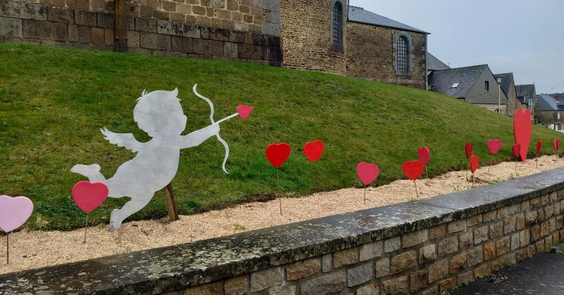 À l'occasion de la Saint-Valentin, la commune se pare de décors qui se déclinent autour de ce thème. Une création du service technique.