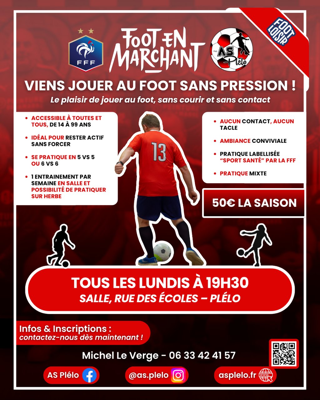 Lancé avec succès il y a plusieurs saisons, le foot en marchant revient à l’AS Plélo pour la saison 2025-2026 avec une énergie intacte et une ambition renforcée : proposer une activité physique accessible, ludique et conviviale à toutes et tous, dès 14 ans.