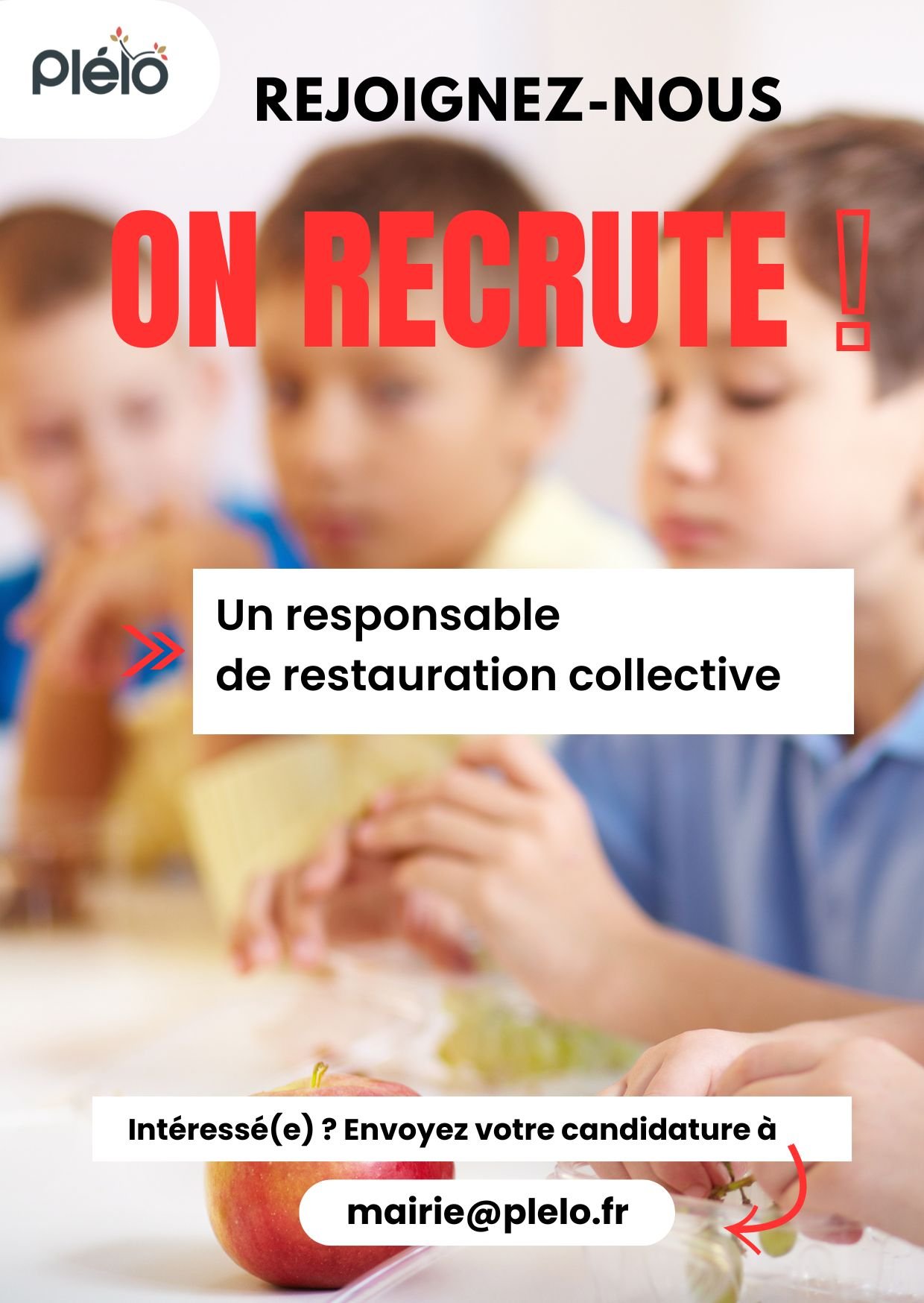La commune de Plélo recrute un responsable de restauration collective.