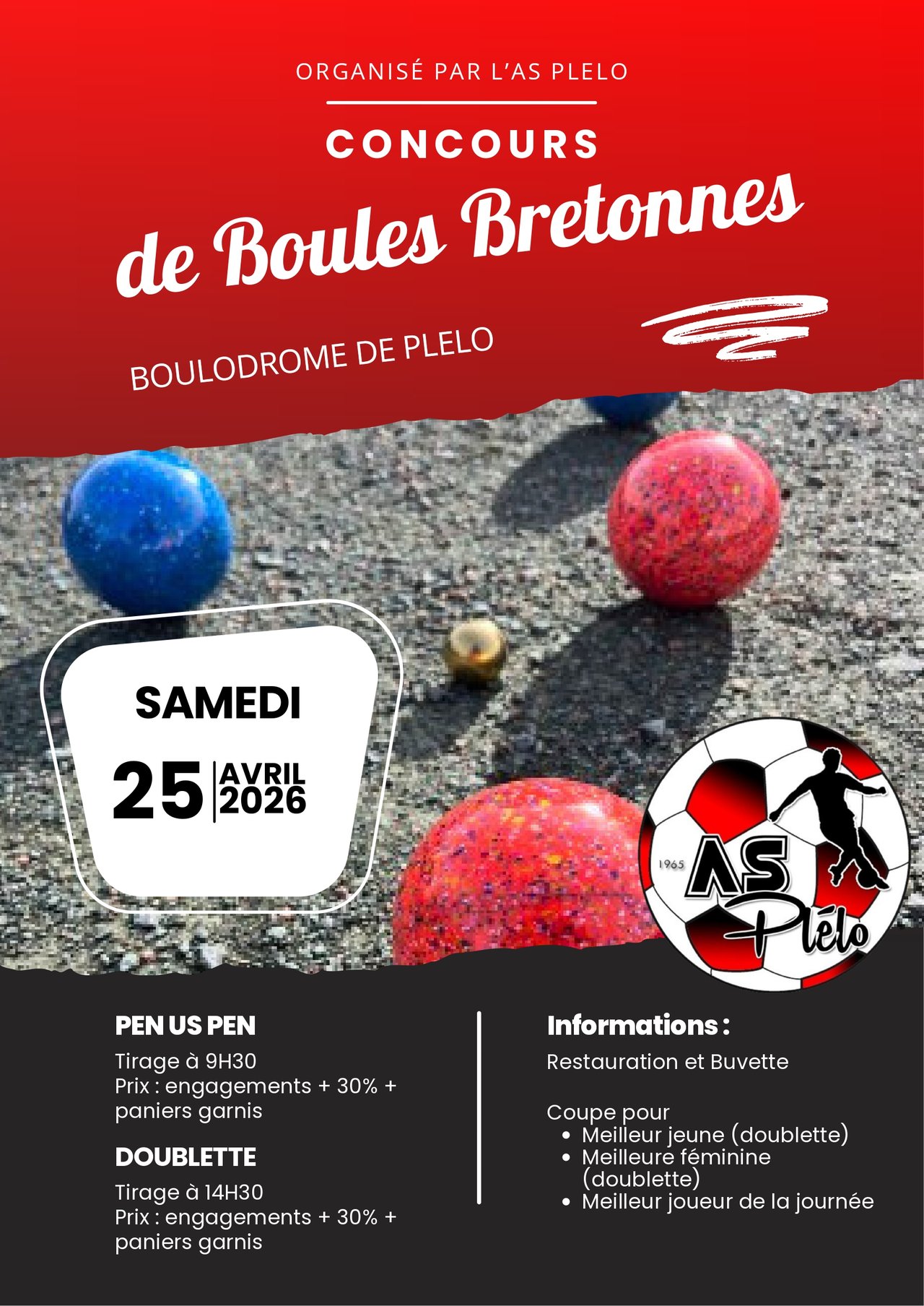 Nous vous attendons nombreux au boulodrome de Plélo le samedi 25 avril 2026 !
