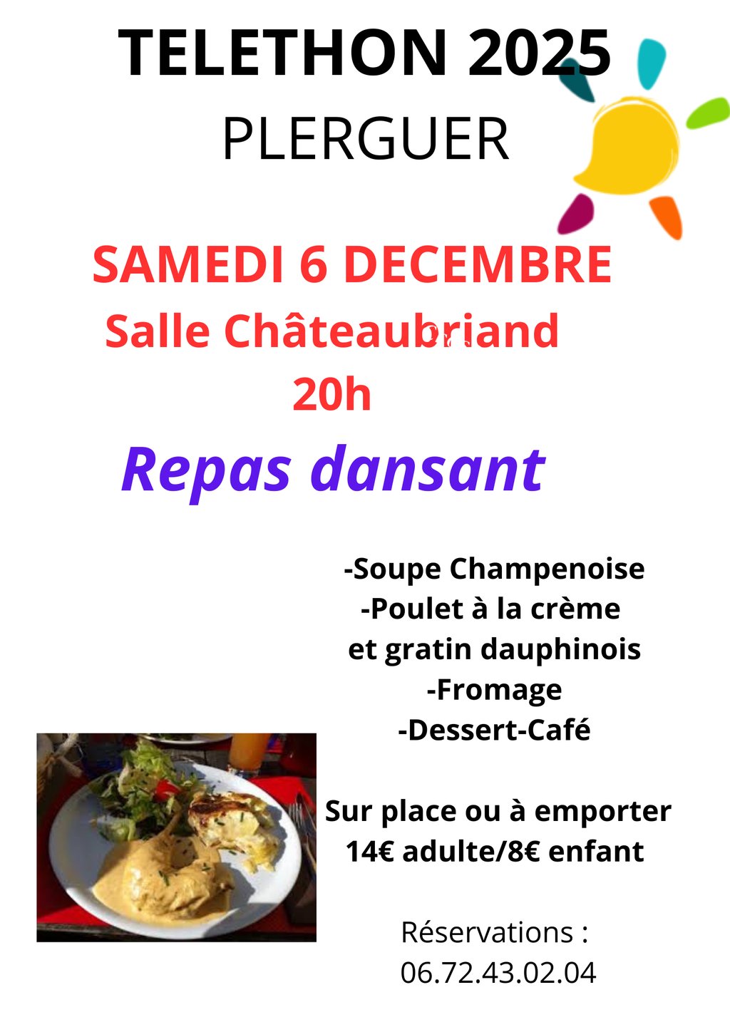 N'oubliez pas de vous inscrire pour le repas du Téléthon le samedi 6 décembre prochain , sur place ou à emporter ! Mobilisons-nous,c'est pour la bonne cause !