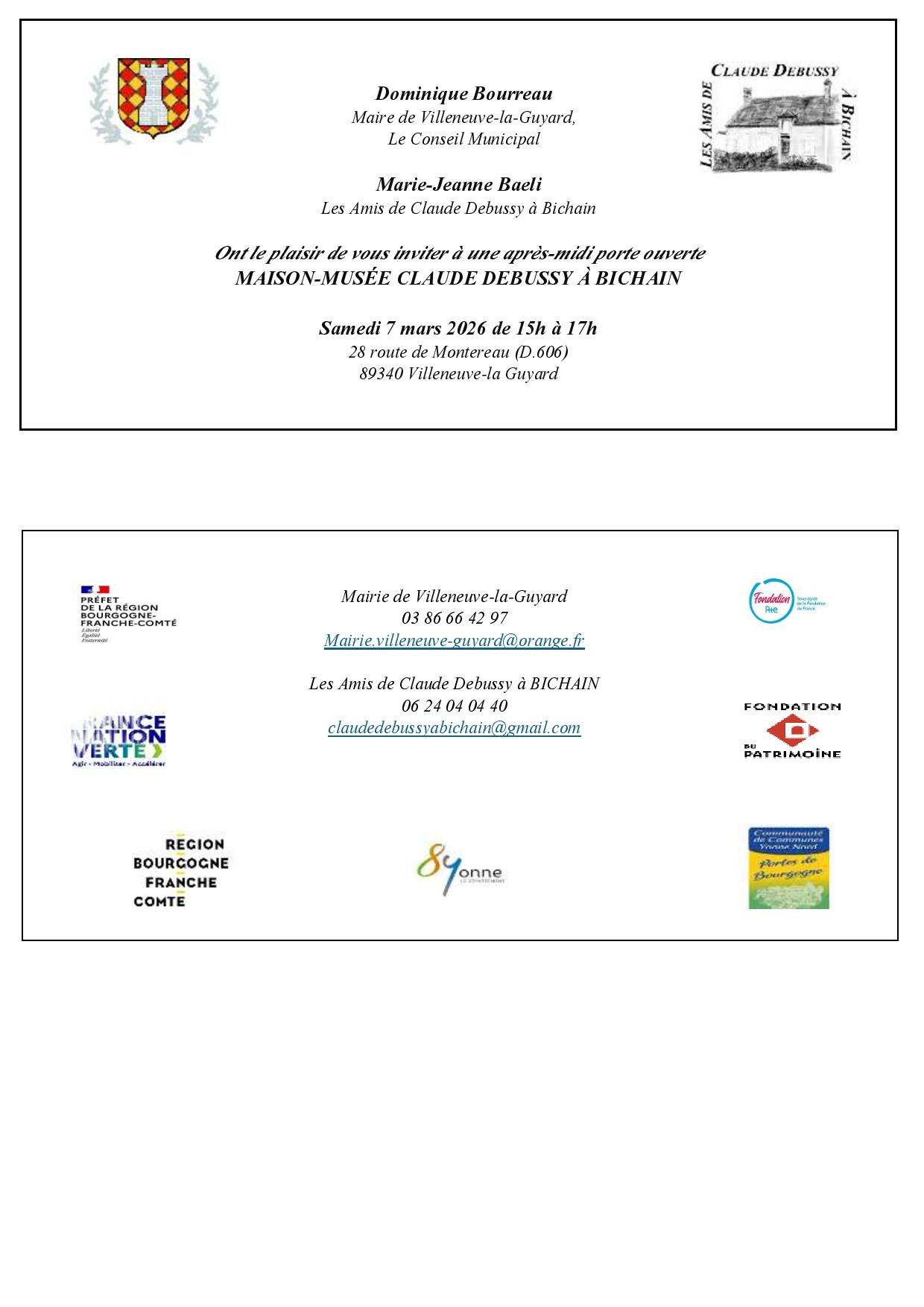 Le Maire, Dominique BOURREAU et l'association les Amis Claude Debussy à Bichain vous attendent nombreux pour cette visite !
