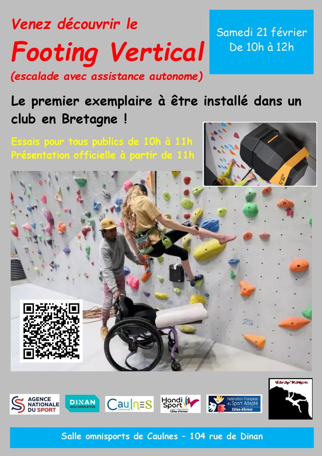 Le club d'escalade Varap'Rance vient de faire l'acquisition du système "Footing vertical" (équipement qui permet de grimper avec une assistance autonome).