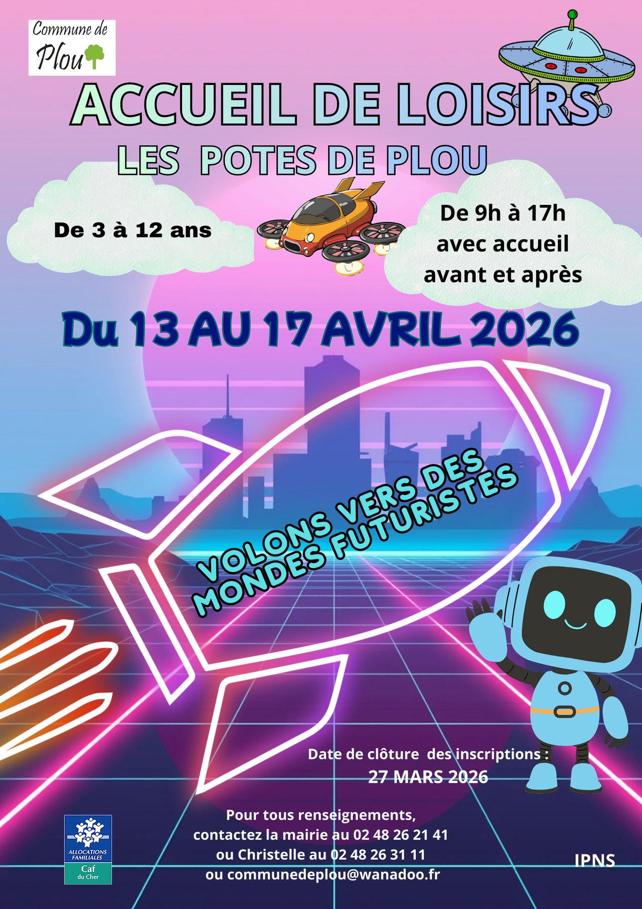 Les inscriptions pour l'accueil de loisirs "LES POTES DE PLOU" sont ouvertes. Vous avez jusqu'au 27 mars 2026 pour inscrire vos enfants.