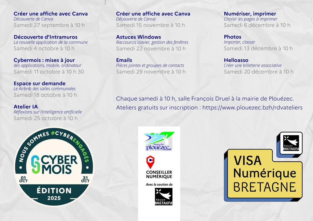 - 11 octobre 2025 à 10h30 : Cybermois : Les mises à jour
