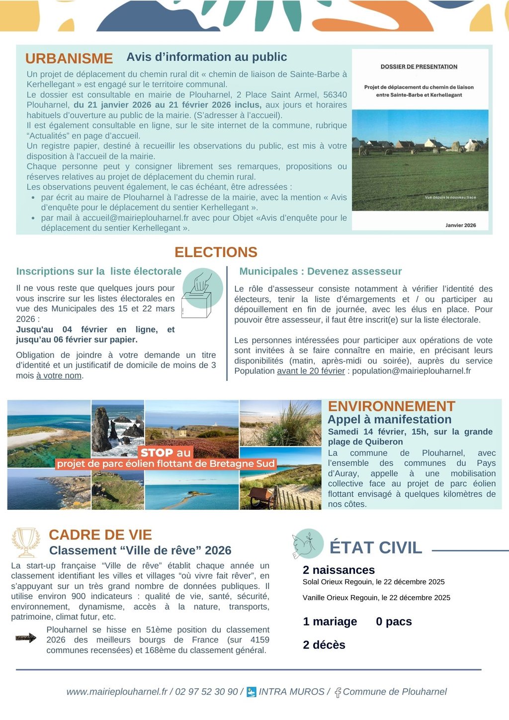 Le Plouharnel Info du mois de FEVRIER vient de paraître.