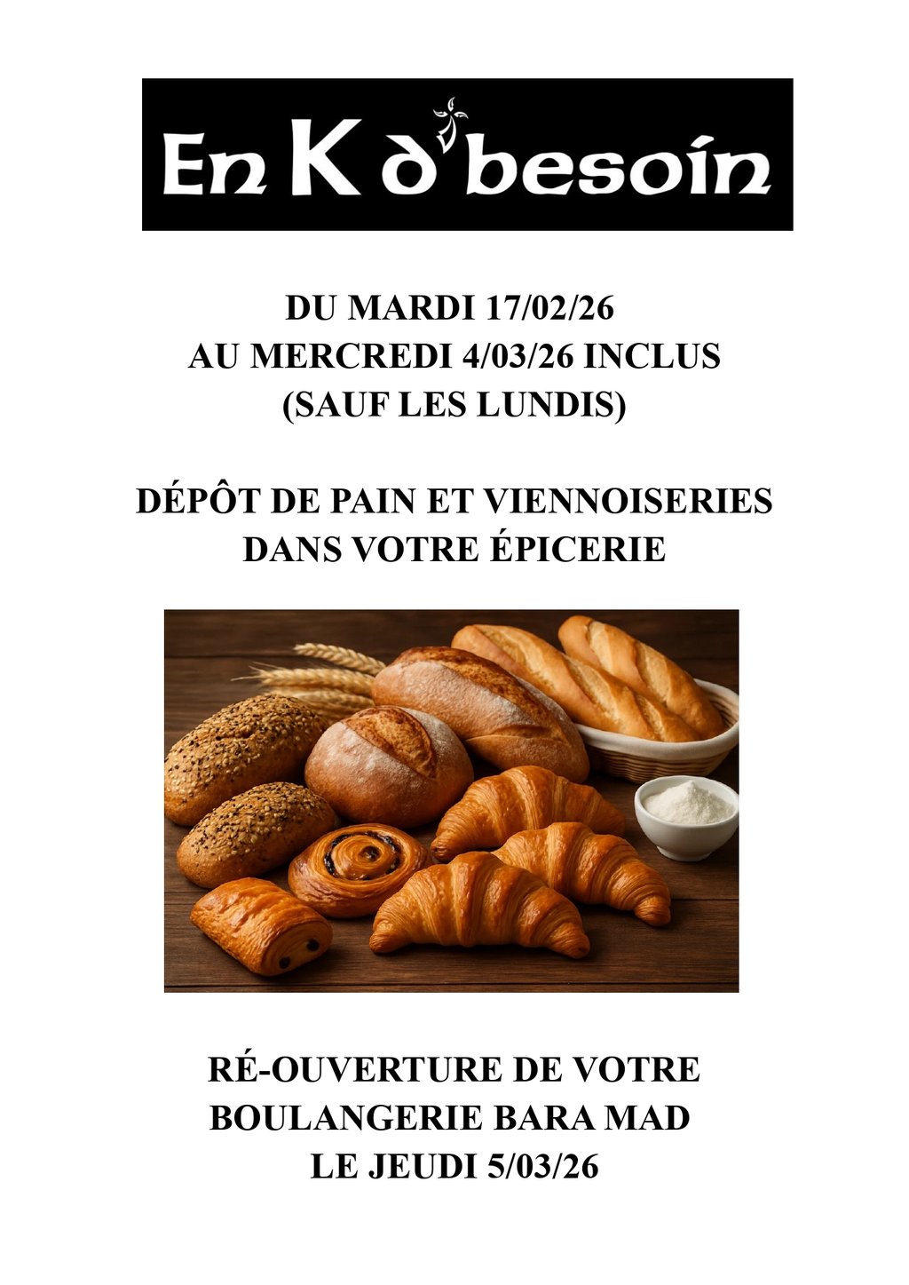 Dépôt de pain pendant les congés de votre boulangerie Bara Mad