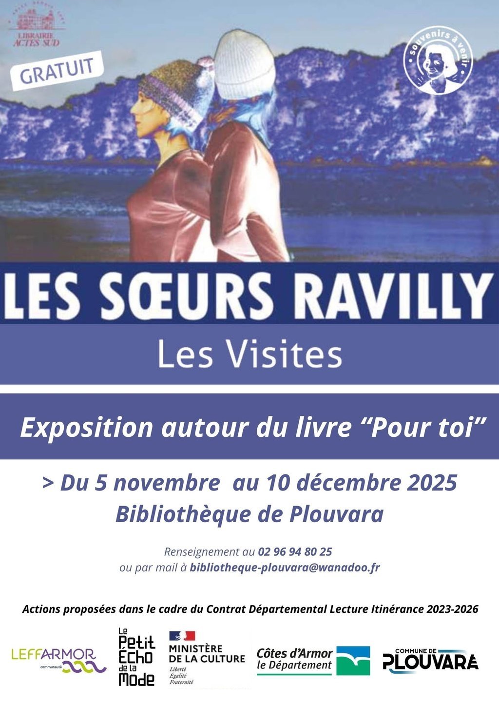 Dans le cadre du Contrat Départemental de Lecture Itinérance, la bibliothèque de Plouvara accueille l'exposition "Les Visites" des sœurs Ravilly du 5 novembre au 10 décembre 2025.