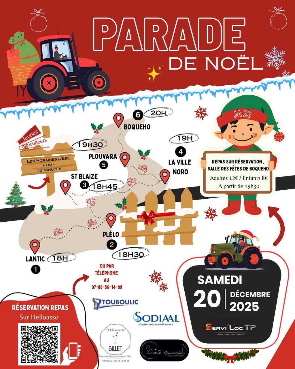 🚜 La parade de Noël des Jeunes Agriculteurs du canton de Châtelaudren-Plouagat revient le 20 décembre à Plouvara !
