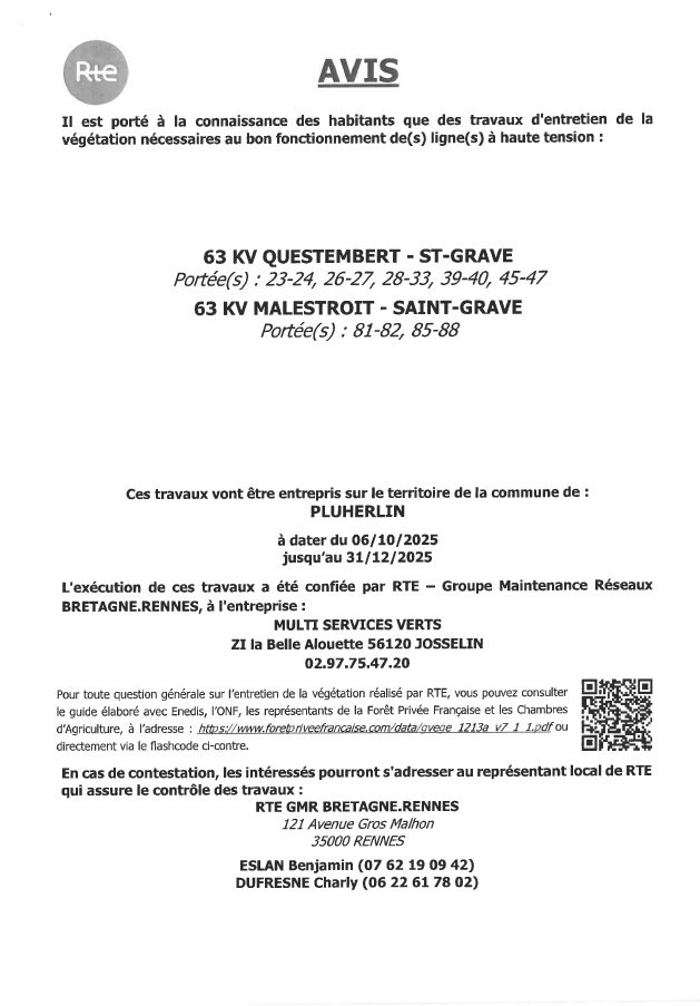 Des travaux d'entretien de la végétation aux abords des lignes à haute tension vont avoir lieu sur la commune d'octobre à décembre.