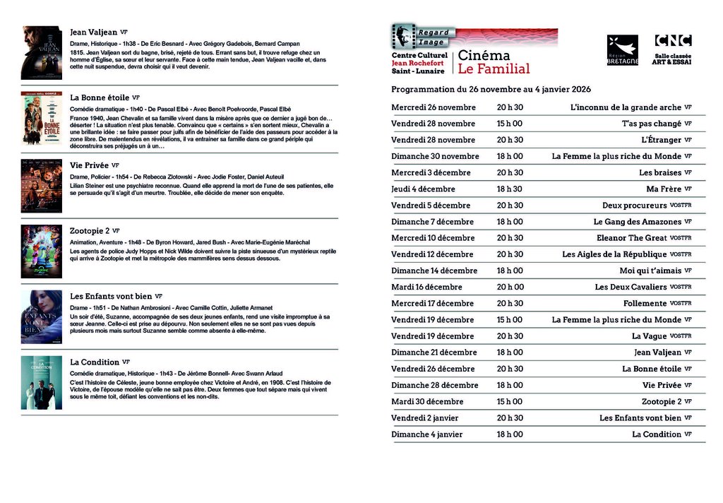 Programmation du Cinéma Le Familial du 26 novembre 2025 au 4 janvier 2026