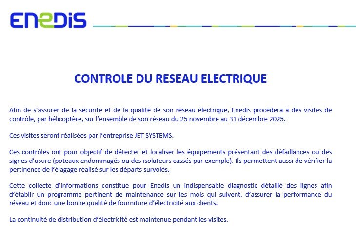 🔵 INFORMATION ENEDIS – CONTRÔLE DU RÉSEAU ÉLECTRIQUE 🔵