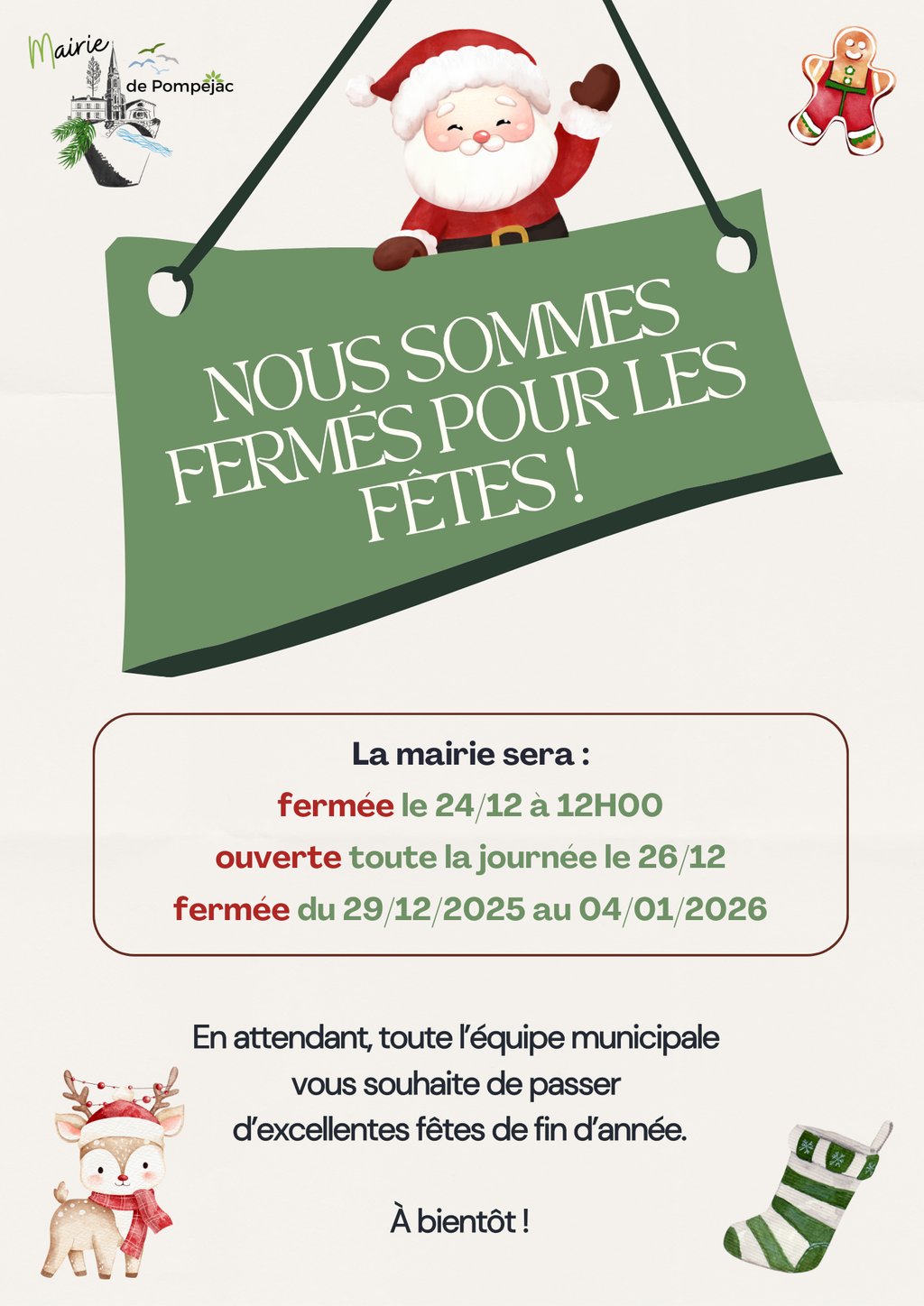 Informations de fermeture de la mairie