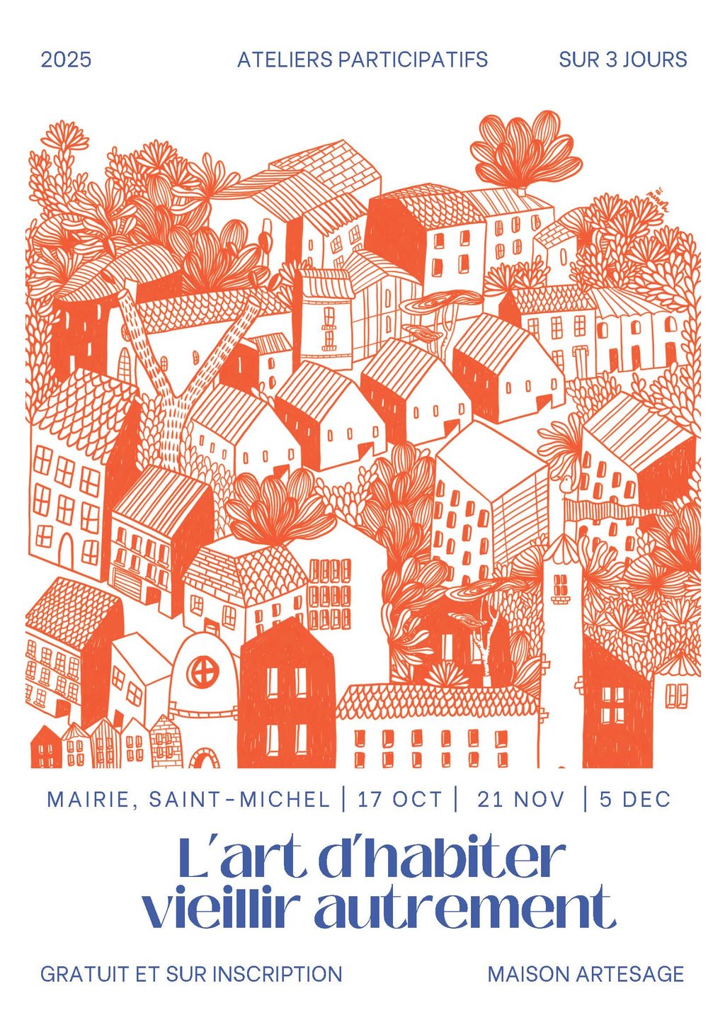 Les vendredis 17 octobre, 21 novembre et 5 décembre, ateliers participatifs en collaboration avec la mairie de Saint-Michel : « L’art d’habiter, vieillir autrement ».