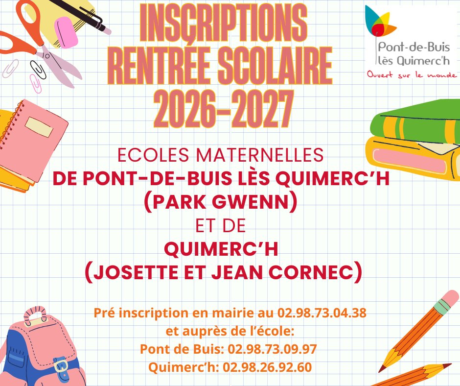 Toutes les informations sont sur notre site internet : https://www.pontdebuislesquimerch.fr/enfance-jeunesse/vie-scolaire/ecoles/