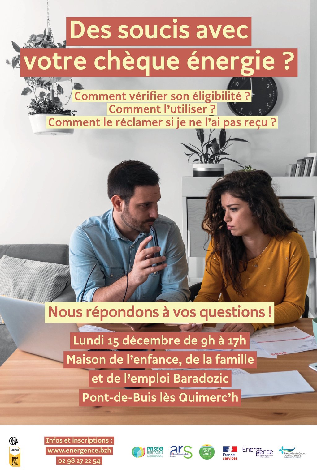 Ener’gence organise le lundi 15 décembre de 9h à 17h une permanence pendant laquelle un conseiller pourra vous accompagner et vous renseigner sur toutes vos questions concernant le chèque énergie 2025 ou vos contrats d’énergie.