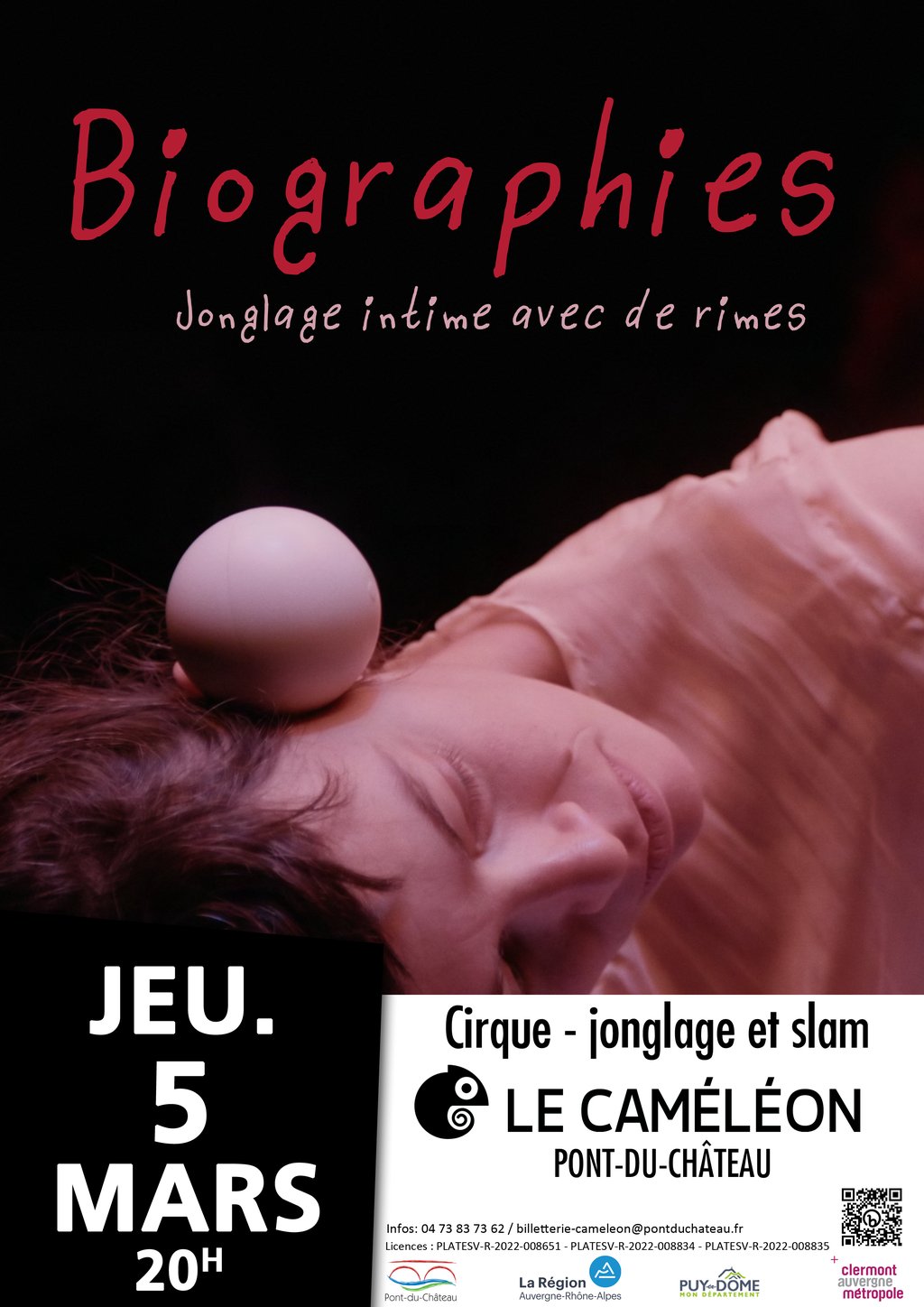 Biographies est un spectacle unique qui mêle jonglage et rap pour plonger le public dans l’univers intime d’une jongleuse. Sur scène, elle jongle au rythme de ses pensées, que son complice rappeur déclame avec énergie et précision. Chaque lancer de balle est en parfaite harmonie avec les mots, créant un véritable ballet entre gestes et paroles. On suit avec émotion ses états d’âme : sa concentration intense, ses petits tracas, ses doutes, ses moments de panique et d’euphorie. Le rappeur, qui connaît ses pensées par cœur, devient sa voix, son porte-parole, et ensemble ils explorent le temps qui passe, la mémoire et ce qui reste des instants précieux partagés sur scène. Un spectacle vibrant, poétique et rythmé, qui invite à ressentir la vie en direct, entre prouesses et poésie urbaine.
