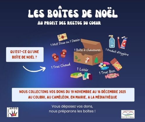 Les jeunes de « Pont duch’Ados » proposent de créer des boîtes de Noël à destination des personnes accompagnées par les Restaurants du Cœur de Pont-du-Château. Pour cela, ils ont besoin de votre participation !