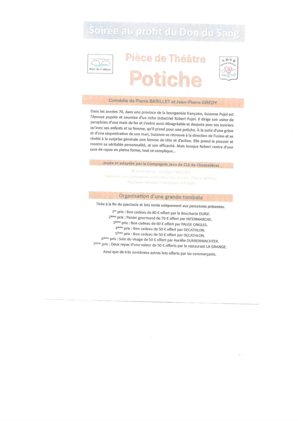 Soirée Théâtre organisée par l'Association pour le Don de Sang Bénévole de Pont du Château