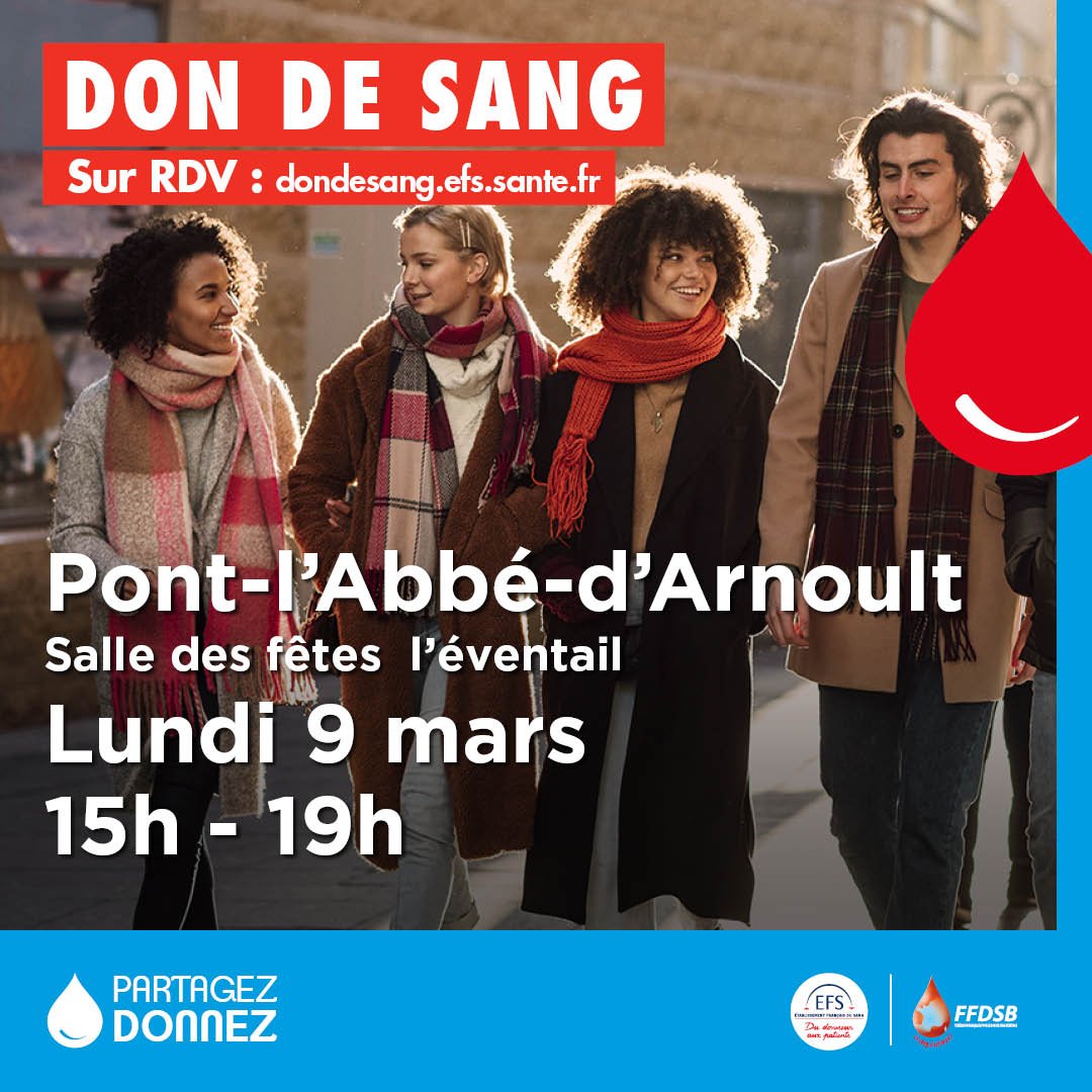Prochaine collecte de sang le lundi 09 mars entre 15h00 et 19h00. âŁ